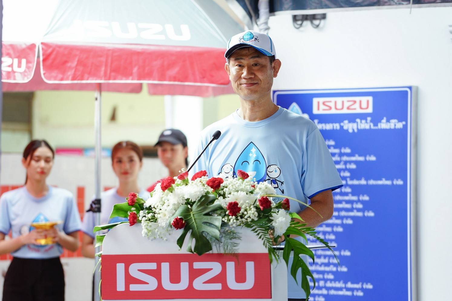 มร. ทาคาชิ ฮาตะ กรรมการผู้จัดการ บริษัท ตรีเพชรอีซูซุเซลส์ จำกัด กล่าวว่า “กลุ่มอีซูซุในประเทศไทยยังคงมุ่งมั่นสานต่อปณิธานดำเนินการช่วยเหลือแก้ปัญหาน้ำดื่มในโรงเรียนอย่างต่อเนื่องอย่างไม่มีวันสิ้นสุด ด้วยการดำเนินโครงการ “อีซูซุให้น้ำ...เพื่อชีวิต” แห่งที่ 43 เพื่อส่งเสริมคุณภาพชีวิตที่ดีให้แก่สังคม โดยการเข้าไปช่วยเหลือโรงเรียนที่ประสบปัญหาขาดแคลนน้ำดื่มสะอาดซึ่งได้รับการสนับสนุนอย่างดียิ่งจากกรมทรัพยากร น้ำบาดาล กระทรวงทรัพยากรธรรมชาติและสิ่งแวดล้อม ร่วมลงพื้นที่พร้อมกับทีมงานจากอีซูซุ สำรวจและสรุปปัญหาการขาดแคลนน้ำดื่มสะอาดของโรงเรียนอนุบาลศรีบรรพต เพื่อจัดหาน้ำบาดาลสะอาดไว้อุปโภคบริโภคอย่างถูกสุขอนามัยที่ได้มาตรฐานตามองค์การอนามัยโลกให้และส่งเสริมคุณภาพชีวิตที่ดีให้แก่เด็กนักเรียน และบุคลากรภายในโรงเรียน”