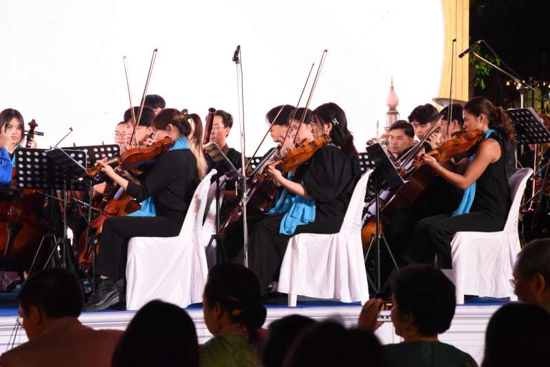 ราชวรมหาวิหาร จากนั้นได้รับชมการแสดงดนตรีออร์เคสตร้า “รุ่งอรุณ สู่ค่ำคืน” ผลงานเพลงที่รังสรรค์พิเศษเพื่องานลอยกระทง โดย สมเถา สุจริตกุล ศิลปินแห่งชาติ สาขาศิลปะการแสดง (ดนตรีสากล-ประพันธ์เพลงร่วมสมัย) พุทธศักราช ๒๕๖๕