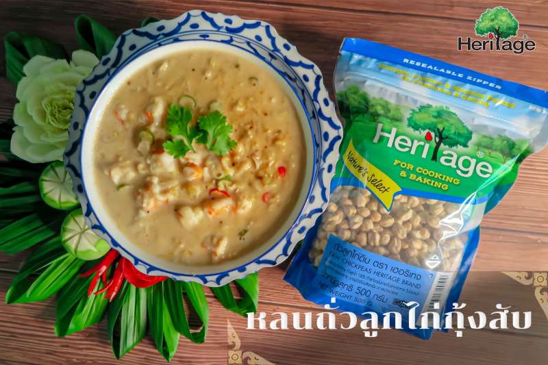 อร่อยครบรสในช่วงเทศกาลลอยกระทงไปกับ “เมนูหลนถั่วลูกไก่กุ้งสับ” เมนูไทยๆเสิร์ฟร้อนๆช่วยเพิ่มความอบอุ่นให้ร่างกาย รับประทานคู่กับผักเคียงต่างๆตามชอบ รสโอชาเกินบรรยาย หอมมันจากกะทิเน้นๆ อร่อยนัวด้วยเนื้อกุ้งเต็มคำ เพิ่มความมันยิ่งขึ้นด้วย ถั่วลูกไก่ แบรนด์ เฮอริเทจ และมาพร้อมประโยชน์มากมาย ไม่ว่าจะเป็นไฟเบอร์และวิตามินและแร่ธาตุต่างๆ เช่น วิตามิน B6 วิตามิน C แมกนีเซียม และโพแทสเซียม รับรองถึงความอร่อยอิ่มท้องแถมสุขภาพดี พร้อมแล้วมาดูสูตรกันเลย
