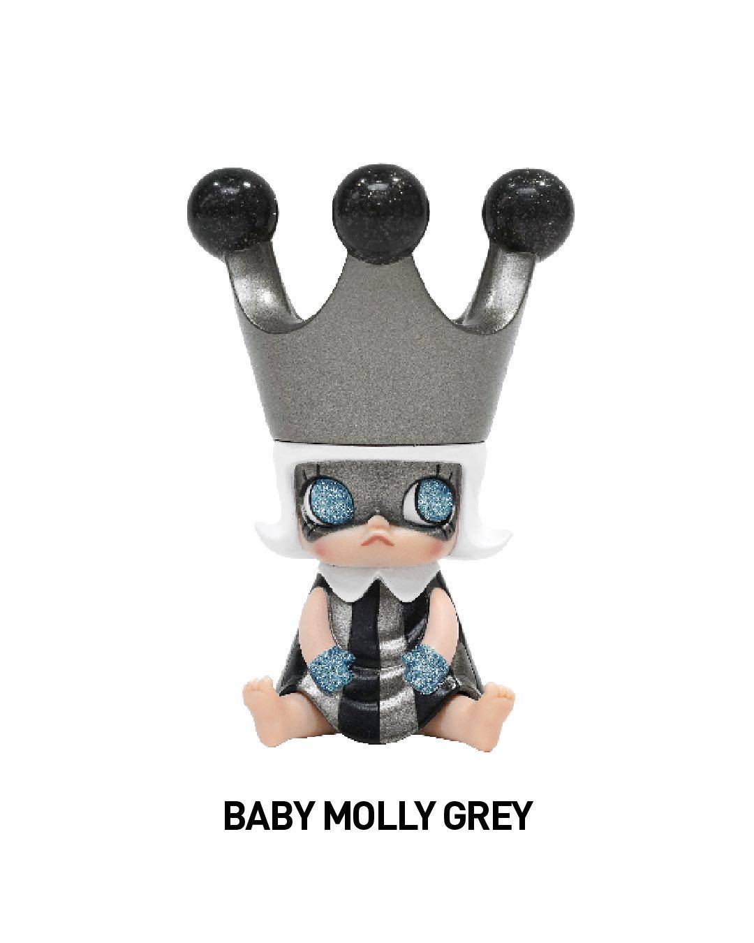 MOLLY ที่มาในรูปแบบ BABY ROYAL MOLLY ครั้งแรกในเมืองไทยกับดีไซน์รูปแบบใหม่และขนาดพิเศษที่ปกติแล้วจะวางจำหน่ายแบบลิมิเต็ดในงาน Art Toys Show เท่านั้น BABY MOLLY GREY ดีไซน์สุดลิมิเต็ดที่ไม่เคยทำให้ทุกคนต้องผิดหวัง กับดวงตาสีฟ้าเป็นประกาย ส่งต่อความสดใส ด้วยพลังที่ส่งออกมาจากดวงตาทำให้หายสงสัยว่าทำไมทุกคนถึงหลงรักและอยากเป็นเจ้าของน้อง BABY MOLLY กัน