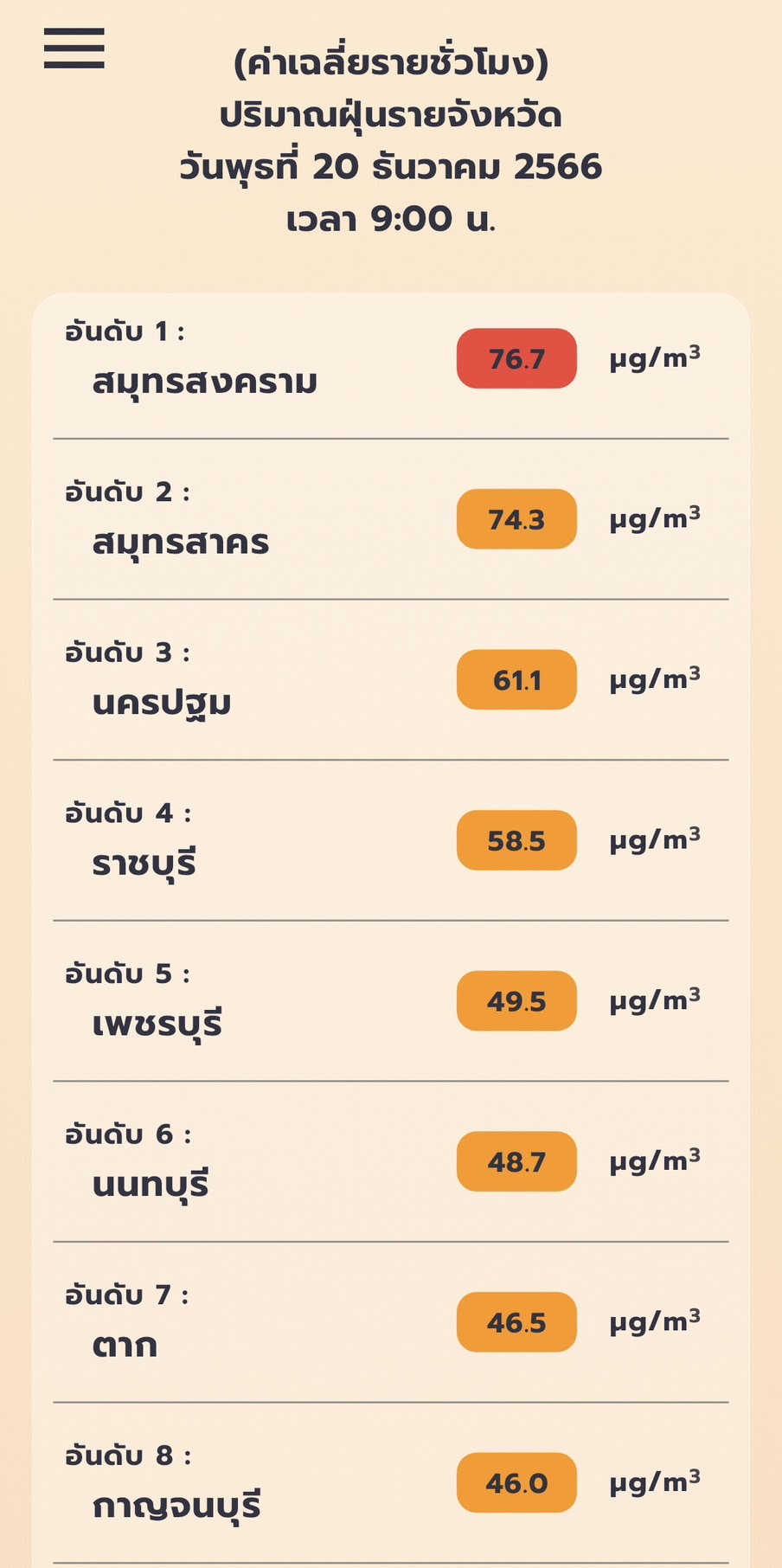 PM 2.5 กลับมาแดงอีกครั้ง..!! สมุทรสงครามนำอยู่ที่ 76.7 ไมโครกรัม