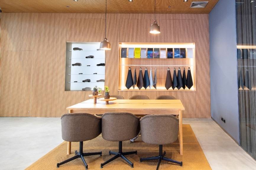 นอกจากนี้ยังมีพื้นที่จัดแสดงรถยนต์วอลโว่ที่ได้รับการพัฒนาให้สอดคล้องไปกับไลฟ์สไตล์ของกลุ่มคนรุ่นใหม่ คนเมือง และคนรุ่นมิลเลนเนียล ไม่เพียงแต่การจัดแสดงรถยนต์วอลโว่รุ่นล่าสุดภายในร้านเท่านั้น แต่ยังรวมถึงการให้บริการพื้นที่ห้องประชุมสำหรับให้คำปรึกษาด้านข้อมูลตัวรถแก่ลูกค้าอีกด้วย มและโซนสุดท้ายที่ให้ลูกค้าได้เห็นและลองสัมผัสคุณภาพของวัสดุต่าง ๆ ทั้งภายในและภายนอกของตัวรถ อาทิ วัสดุภายใน และสีภายนอกของตัวรถ เพื่อประกอบการตัดสินใจหากต้องการซื้อรถวอลโว่
