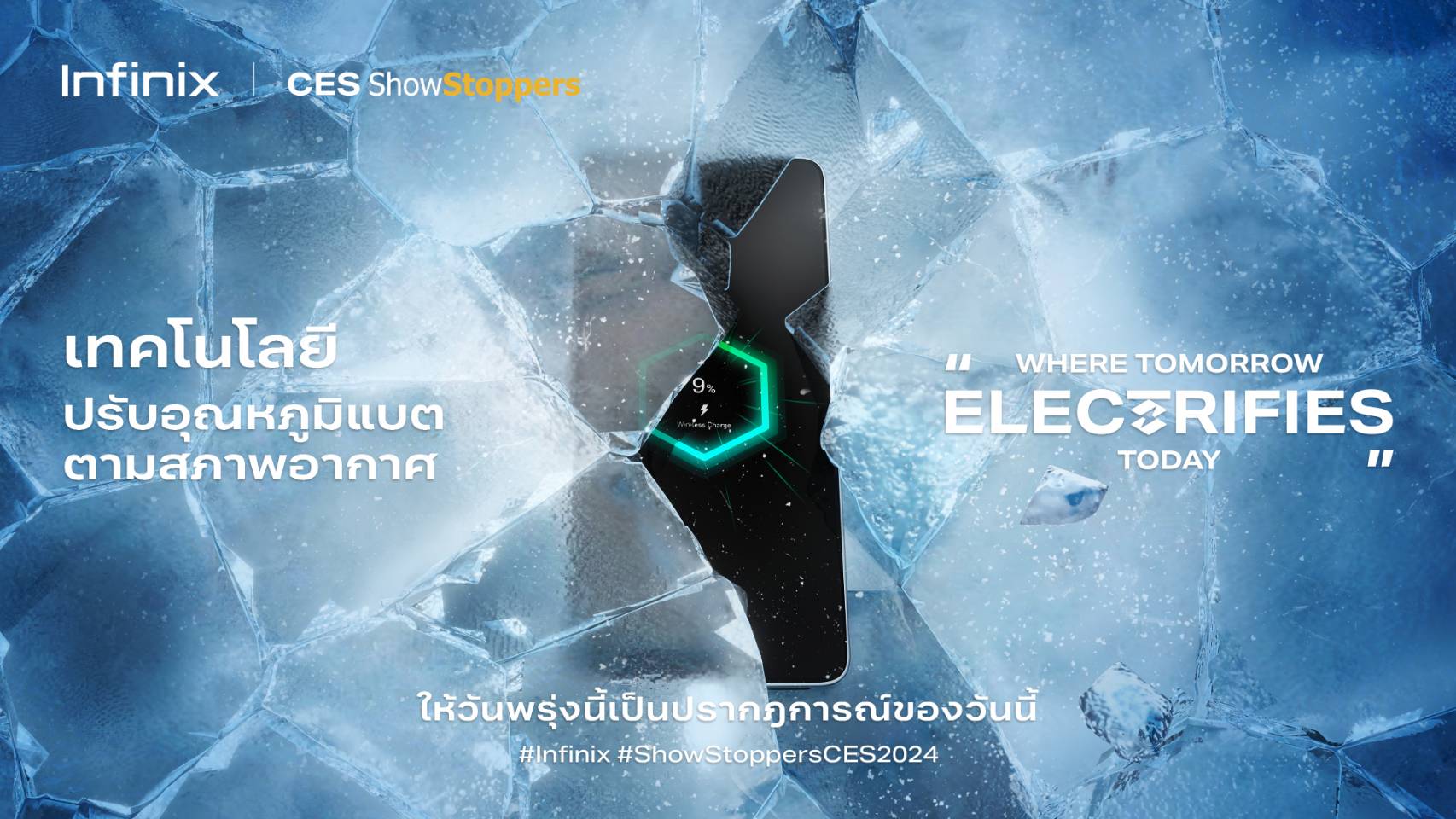 10 มกราคม 2567 กรุงเทพฯ - อินฟินิกซ์ (Infinix) แบรนด์สมาร์ตโฟนราคาคุ้มค่า ครบครันทุกการใช้งาน และตอบโจทย์ไลฟ์สไตล์คนรุ่นใหม่ เผยเทคโนโลยีฝาหลังเปลี่ยนสี (E-Color Shift) ล่าสุด ณ งาน CES 2024 งานแสดงเทคโนโลยีระดับโลก โดย E-Color Shift เป็นเทคโนโลยีที่ทำให้ตัวโทรศัพท์ด้านหลังเปลี่ยนสีได้ โดยไม่ต้องใช้แบตเตอรี่ นอกจากนี้ ยังได้เผยนวัตกรรมชาร์จไร้สาย ผ่านอากาศ (Air Charge) และเทคโนโลยีปรับอุณหภูมิแบตตามสภาพอากาศ (Extreme-Temp Battery) ที่จะมาปฏิวัติวงการโทรศัพท์มือถืออีกด้วย